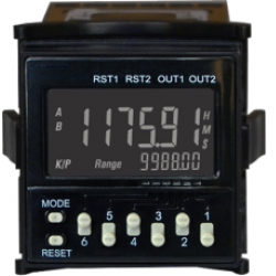 Programowalny 6. cyfrowy dwu/jedo-progowy licznik albo czasomierz albo tachometr. Dwa sterujące wyjścia przekaźnikowe. Zasilanie 15-24VDC , 24VAC Montaż tablica. Możliwa praca z PC przez CAB-090A232...